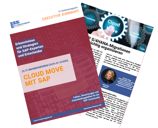 Ja, ich möchte die aktuelle IT-Onlinemagazin Executive Summary Cloud Move mit SAP zur 22. IT-Onlinekonferenz erhalten mit Entscheider-Wissen zu strategischen Ansätzen, neuen Technologie-Potenzialen und Prozessoptimierungen.