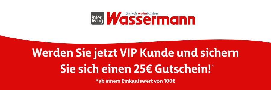 Im Rahmen der Anmeldung zur Möbel Wassermann VIP-Karte erklären Sie sich damit einverstanden, regelmäßig Informationen zu Vorteilen und Aktionen zu erhalten. Diese Informationen erhalten Sie überwiegend auf nachhaltigem Weg per E-Mail.
