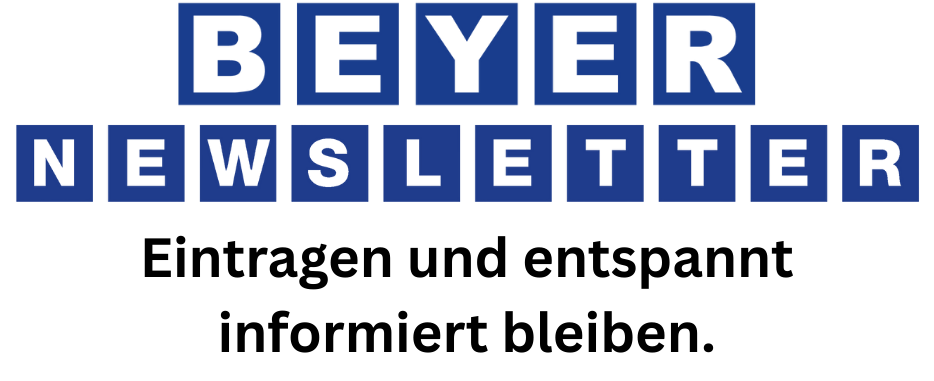 Ja, bitte schicken Sie mir den BEYER-Newsletter per E-Mail (Aktionen, Neuheiten & Miet-Tipps). Abmeldung jederzeit mit einem Klick.